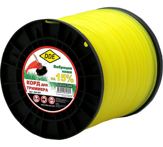 КОРД ТРИММЕРНЫЙ НА КАТУШКЕ DDE "CLASSIC LINE", 2,4ММ Х 860М, ЖЕЛТЫЙ - Магазин "Инструмент", г. Мурманск